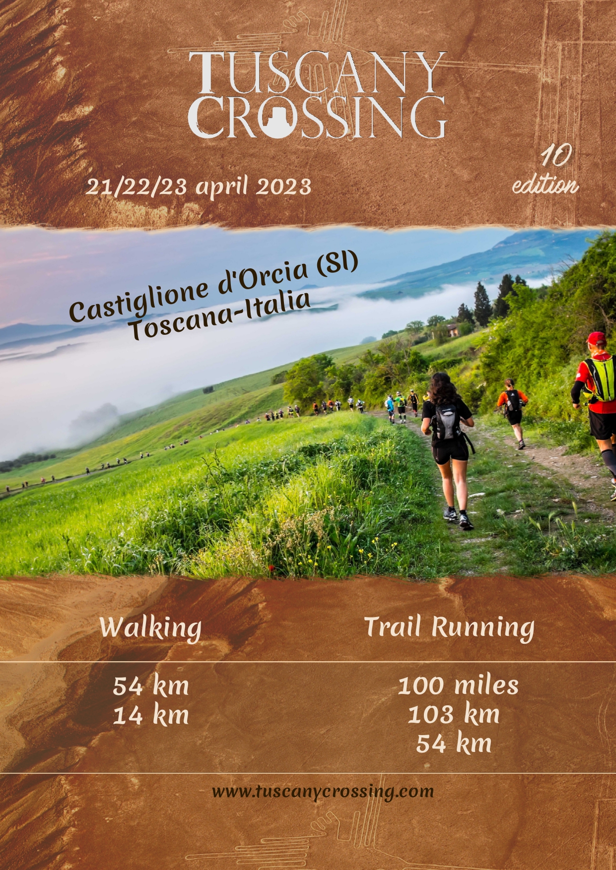 Con la ripresa della manifestazione dopo la pandemia, visto le innumerevoli richieste giunte, la “TUSCANY CROSSING” edizione 2023 amplia la sua offerta di gare e il territorio coinvolto introducendo una nuova distanza: quella delle 100 Miglia già molto popolare all’estero, soprattutto negli USA e la possibilità di fare anche un percorso lungo di 54 km camminando.